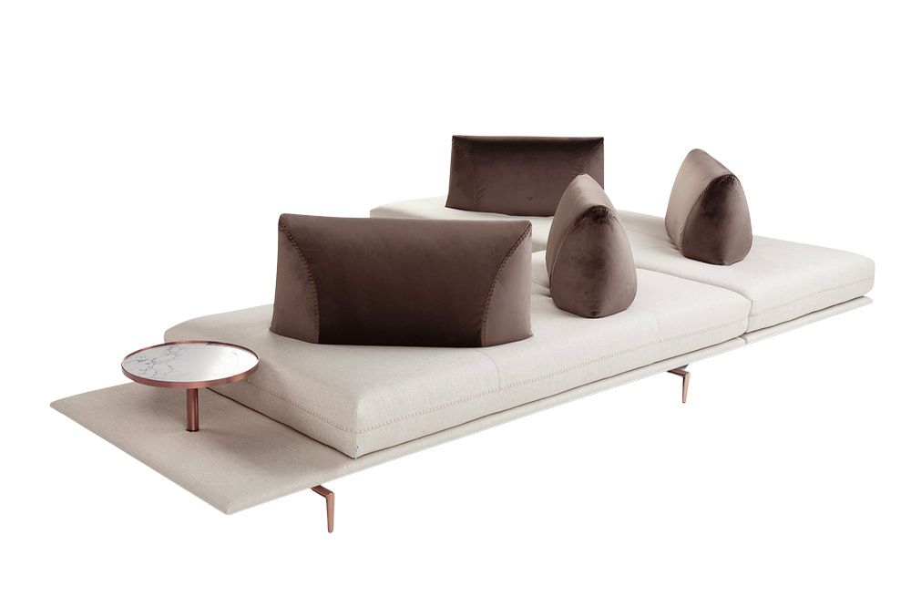 3 Gianduiotto Jr Es hijo de la colección principal Gianduiotto, es un sofá diseñado por Calia Italia para crear momentos informales de relajación total. Dos elementos que hacen que destaque son la mesa auxiliar que le añadieron y los cojines que parecen bombones.