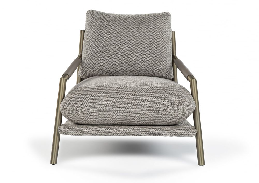 4 Norman Esta butaca es liviana y cómoda, es un diseño de Calia Italia en la que se mezclan el metal con un tapizado en cuero regenerado. Un mueble que ofrece una experiencia de comodidad elegante pero informal.