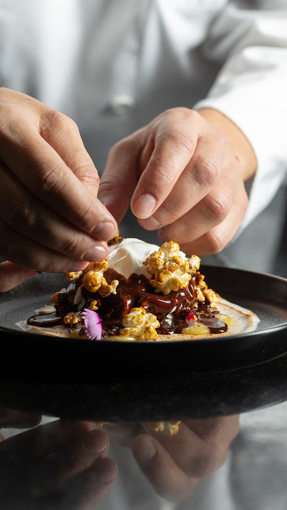 Para ellos, cada celebración es única, por lo que diseñan cada experiencia desde cero. Cuidan la presentación, ofreciendo combinaciones inesperadas que despiertan los sentidos y un impecable servicio que parece una coreografía: “En lugar de ‘servir comida’, creamos atmósferas. Queremos que los invitados vivan algo que nunca olviden, que sientan que cada detalle fue pensado para ellos”, destaca el representante de FÊT.