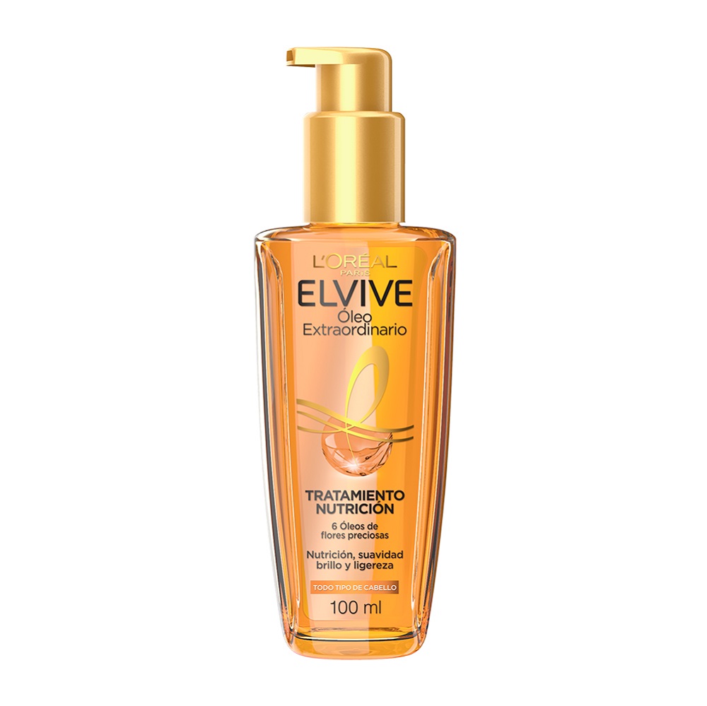 - Elvive Óleo Extraordinario Aceite Capilar: no más cabello fuera de control. Con seis óleos de flores brinda nutrición intensa, brillo extraordinario, control de frizz y suavidad envidiable.
