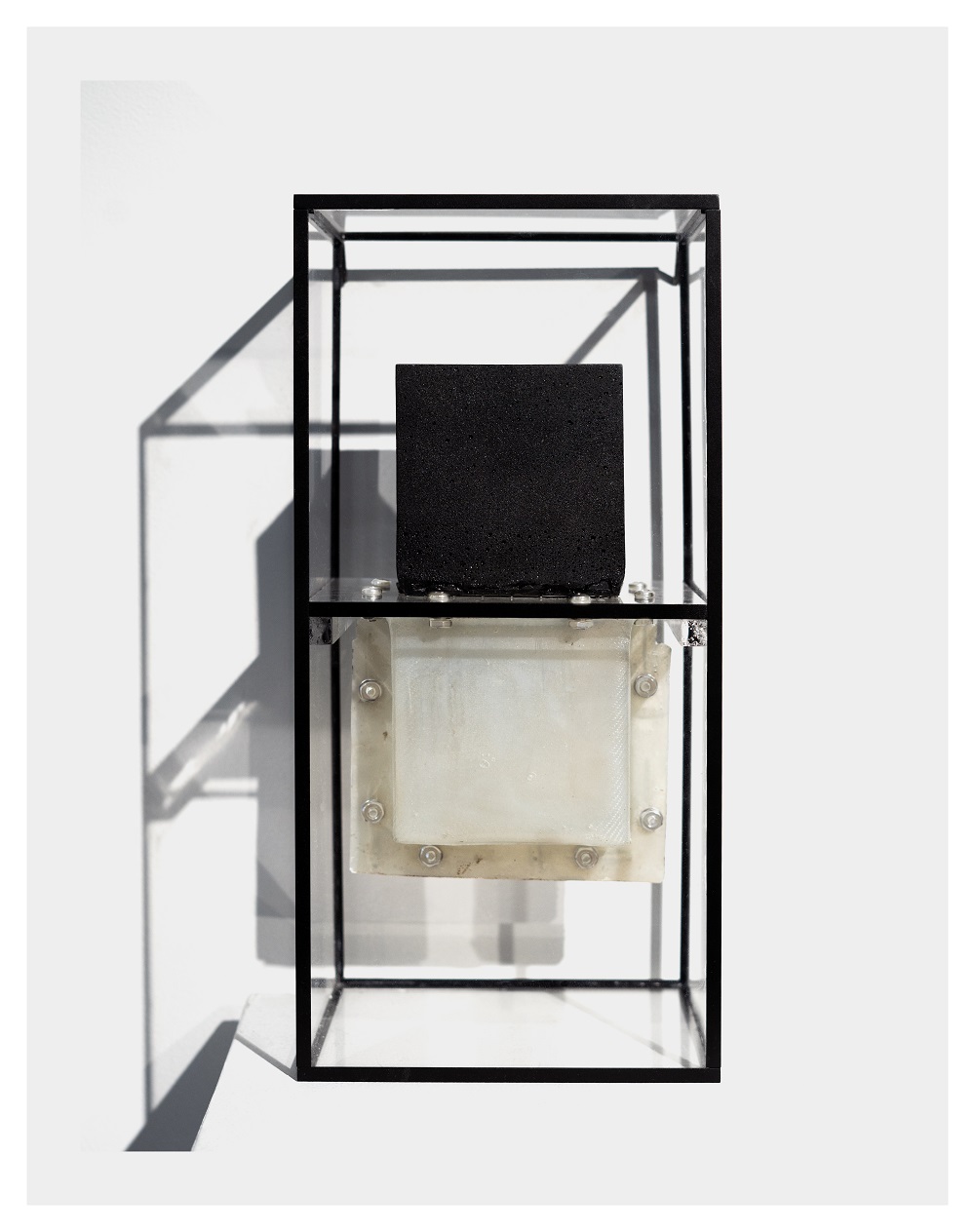 No obstante, el petróleo tampoco lo es todo, porque la obra de Tony también tiene un alma profunda e intelectual. En ella aparecen dos elementos constantes: “el reflejo, que me interesa porque es un espacio muy extraño, ya que te muestra dónde estás, pero te desplaza al mismo tiempo… entonces estás y no estás”; y el otro elemento serían los huecos, que él confiesa le obsesionan porque no son objetos, pero existen y de alguna manera tienen efectos en la obra, organizando el espacio.