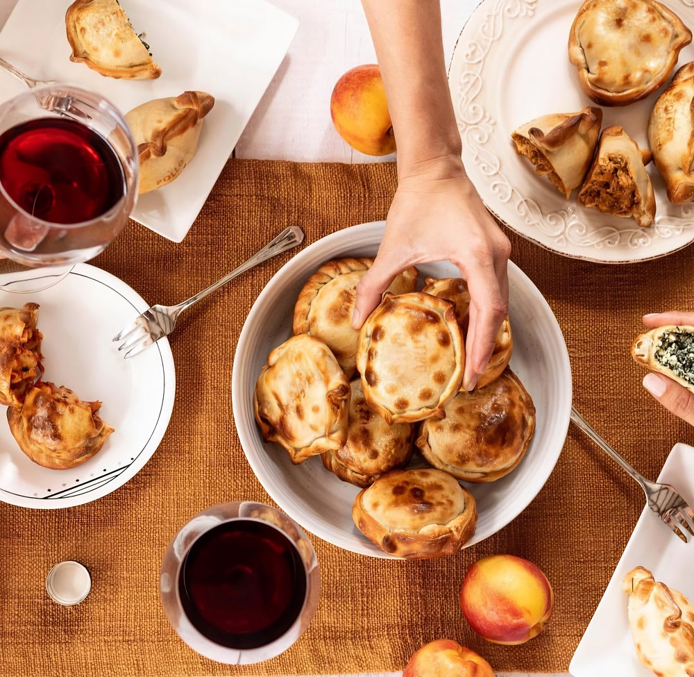 Son horneadas (como lo son en Argentina) y cuentan con variedad de rellenos, como carne, pollo, pizza, ajoporro y tocineta, carne con queso amarillo fundido, salchicha argentina, queso y guayaba, entre otros. También ofrecen varios tipos de croissants, las famosas medias lunas y ricos alfajores hechos en casa.