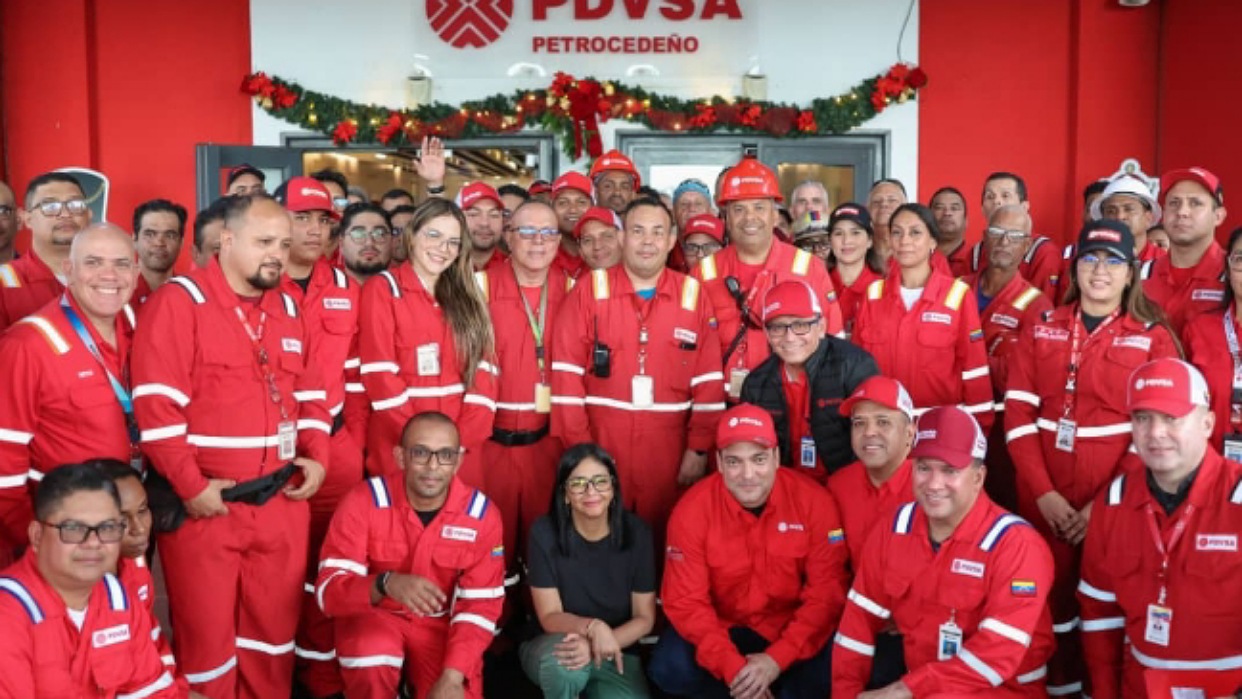 La alta funcionaria abrió su mensaje con un llamado a la alerta permanente frente a las amenazas externas y recordó el papel de los trabajadores en el levantamiento de la industria tras el sabotaje petrolero